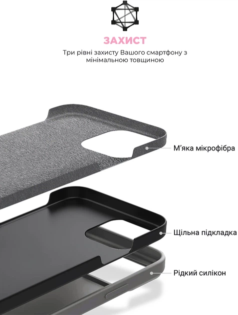 Чохол виготовлений з використанням преміальних матеріалів, таких як Liquid silicone з Soft Touch покриттям. Це надає чохлу м'якість і приємний на дотик вигляд, що забезпечує комфортне тримання вашого iPhone в руці.