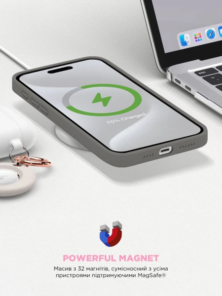Інтегрована функція MagSafe дозволяє вам використовувати різноманітні аксесуари, які підтримують цю технологію, без необхідності використовувати додаткові кріплення. Це робить чохол ще більш універсальним і зручним у використанні.
