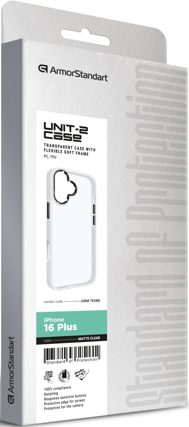 - Чохол ArmorStandart UNIT2 для Apple iPhone 16 Plus Matte Clear (ARM79288)