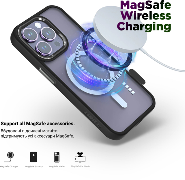| Особливості конструкції | Кільце тримач, Протиударний, Сумісний з MagSafe, Сумісний з бездротовим ЗП |