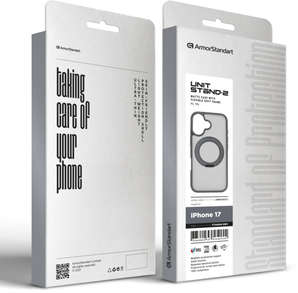 - Чохол ArmorStandart Unit Stand2 для Apple iPhone 17 Titanium Grey (ARM86331)