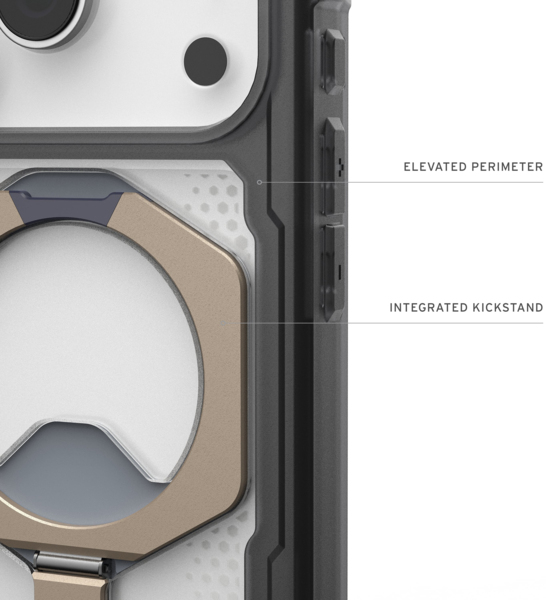Чохол Plasma XTE Case є ідеальним поєднанням передового дизайну та надійного захисту. Цей чохол оснащений вбудованою металевою підставкою, яка дозволяє легко перемикатися між альбомним і книжковим режимами перегляду для зйомки фотографій, відеодзвінків і потокового мовлення без використання рук. Розроблений з урахуванням вимог міцності та стилю, його легка композитна конструкція забезпечує гладкий профіль без шкоди для міцності. Завдяки вдосконаленим м'яким кутам чохол забезпечує чудову амортизацію при падіннях, а піднята окантовка екрану додає додатковий шар захисту, що оберігає екран від подряпин і тріщин. Вбудований потужний магнітний модуль забезпечує безпроблемну сумісність із зарядкою MagSafe, завдяки чому ваш пристрій завжди буде зарядженим і готовим до роботи.