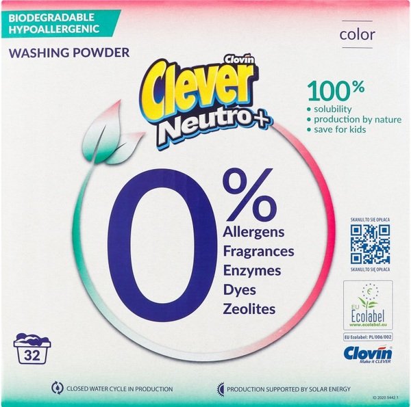 - Пральний порошок Clever Neutro+Color 1,92 кг