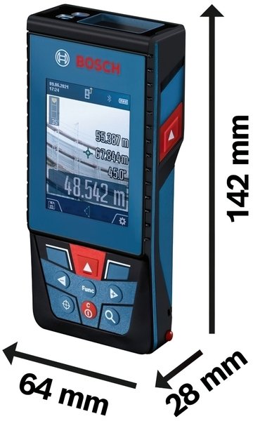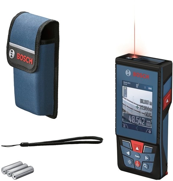 Цей професійний лазерний вимірювач для зовнішніх робіт оснащений видошукачем цифрової камери з функцією збільшення, який точно вимірює відстані до 100 м. Зображення з камери і результати вимірювань легко побачити на великому, висококонтрастному, 2,8-дюймовому кольоровому IPS-дисплеї, що повертається для портретного або альбомного вигляду. Для зручності документування результати вимірювань можуть бути передані через Bluetooth у додаток Bosch MeasureOn App. Цей лазерний вимірювач є ідеальним рішенням для складних робочих майданчиків завдяки пило- та вологозахисту IP54 і стійкому до подряпин склу дисплея.