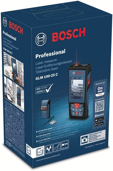 - Далекомір лазерний Bosch Professional GLM 100-25 C с чехлом и батарейками (0.601.072.Y00)