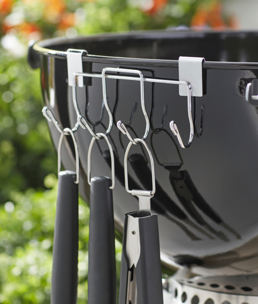 Завдяки спеціальному тримачу інструментів для гриля Weber зручно тримати під рукою все, що необхідно. Міцний сталевий тримач із гачками дасть змогу заощадити простір і тримати інструменти у швидкому доступі. Досить закріпити його на край котла гриля і повісити на гачки те, що потрібно для роботи, наприклад: лопатку, щипці та щітку. Забезпечте максимальний рівень комфорту разом із фірмовими аксесуарами Weber!