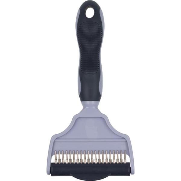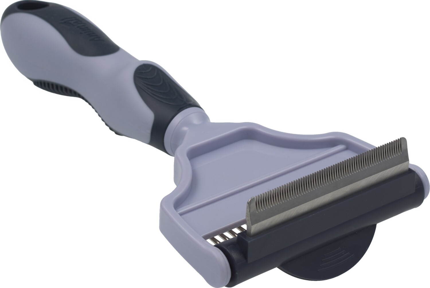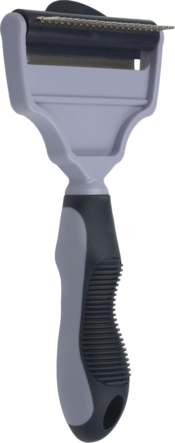 - Функціональний інструмент 2 в 1. Поєднання дешеддера та граблів замінює одразу кілька аксесуарів для грумінгу.