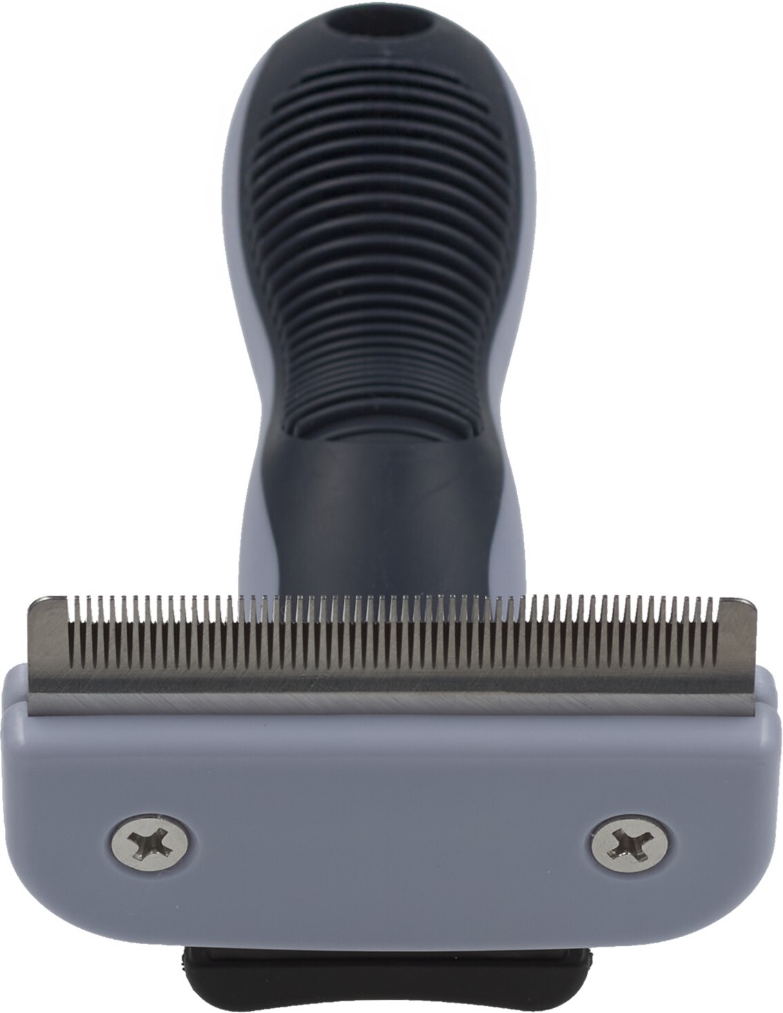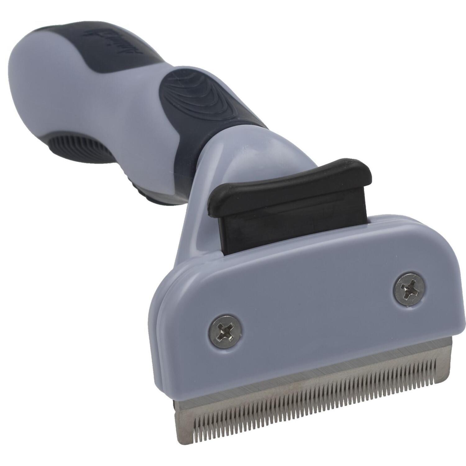 Дешеддер AnimAll створений, щоб зробити процес вичісування шерсті максимально ефективним і комфортним для собак та їх власників. Інструмент легко видаляє підшерсток, допомагає зменшити линяння й підтримує охайний вигляд шерсті, не травмуючи ніжну шкіру тварини.