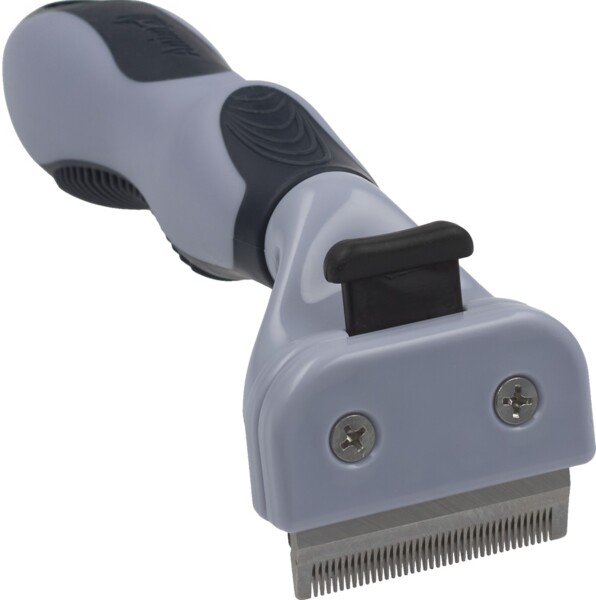 Дешеддер AnimAll створений, щоб зробити процес вичісування шерсті максимально ефективним і комфортним для собак та їх власників. Інструмент легко видаляє підшерсток, допомагає зменшити линяння та підтримує охайний вигляд шерсті, не травмуючи ніжну шкіру тварини.