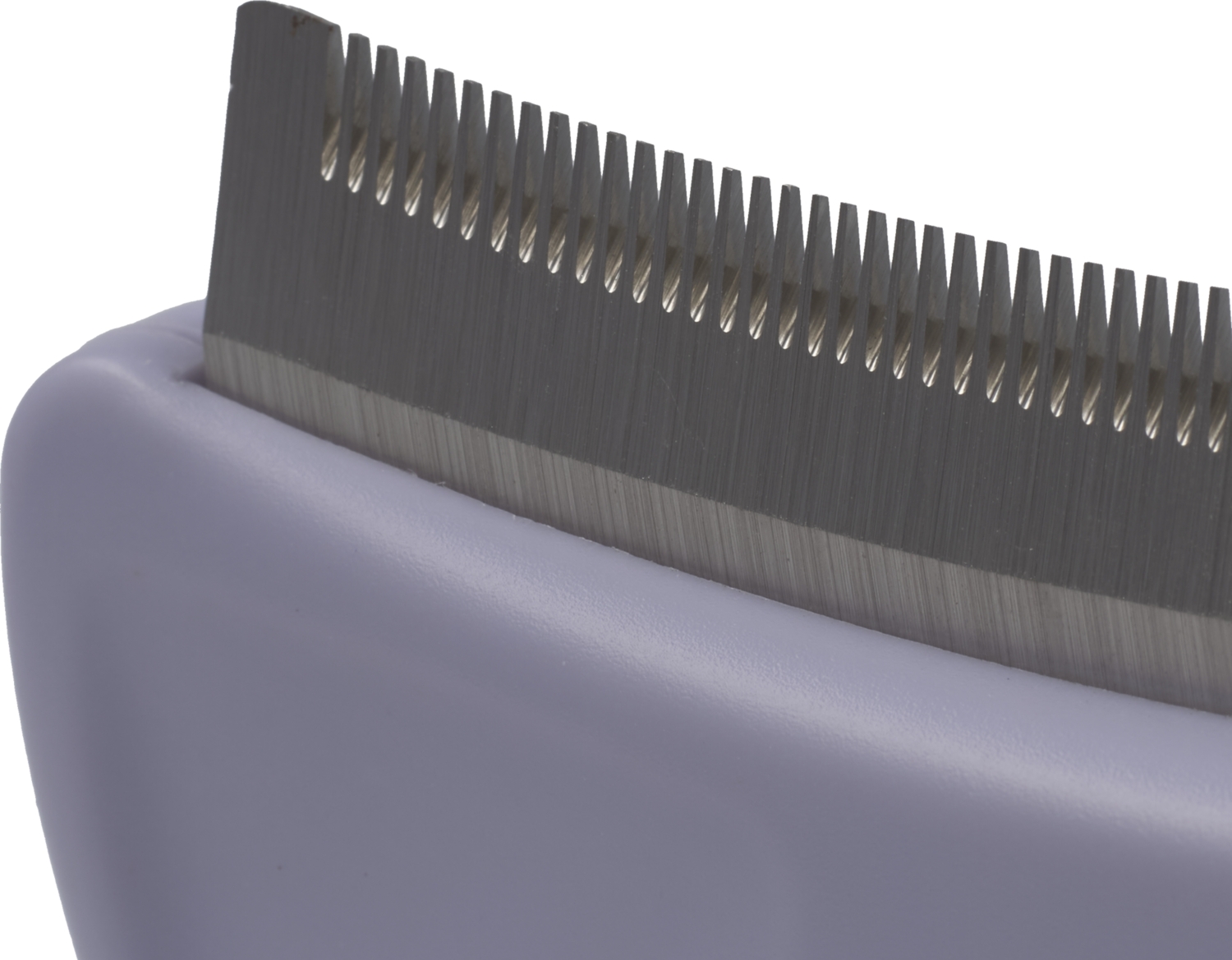 - Дугоподібне лезо: Спеціальна форма леза повторює контури тіла тварини, що дозволяє ефективно розчісувати шерсть навіть у важкодоступних місцях;