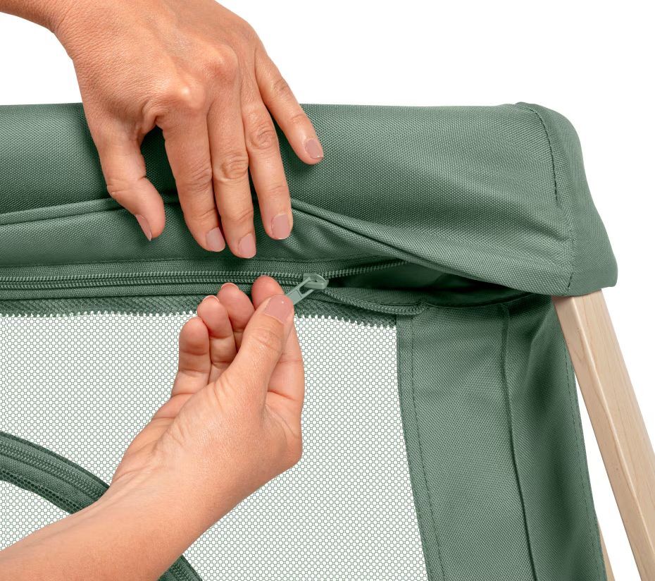 Ваш малюк комфортно спить у ліжечку для новонароджених на блискавці, яке згодом можна відстебнути, щоб створити зручне спальне місце для вашого малюка.