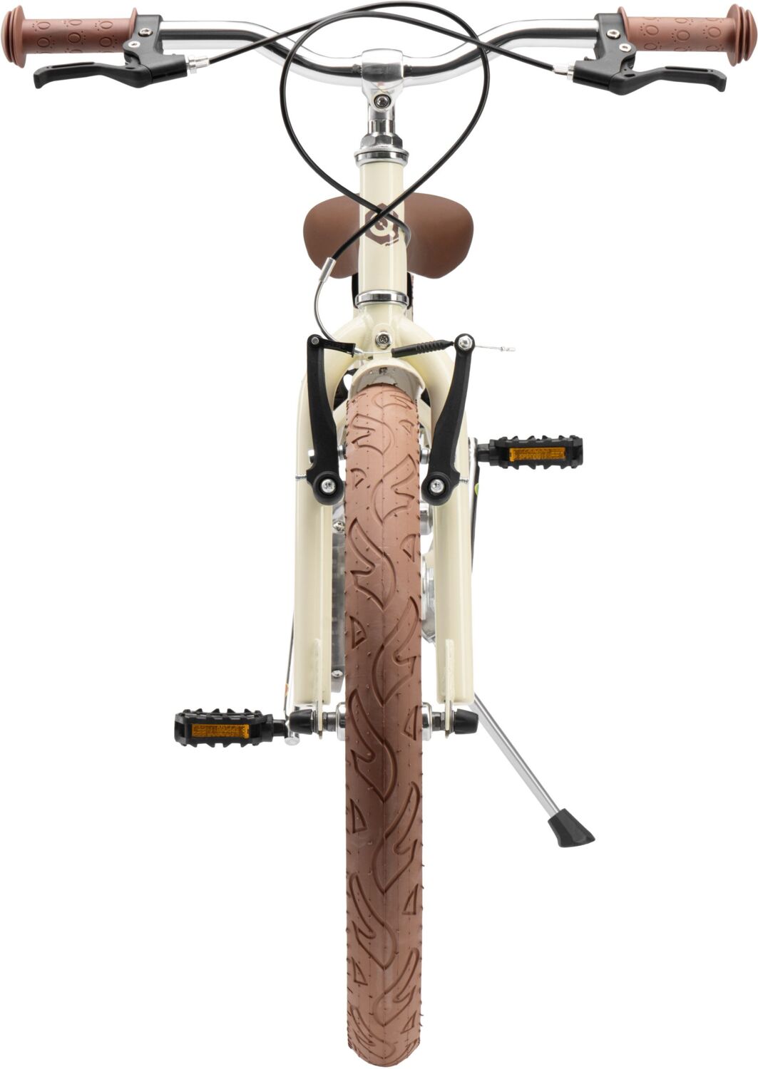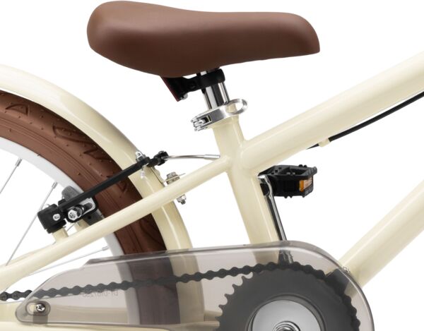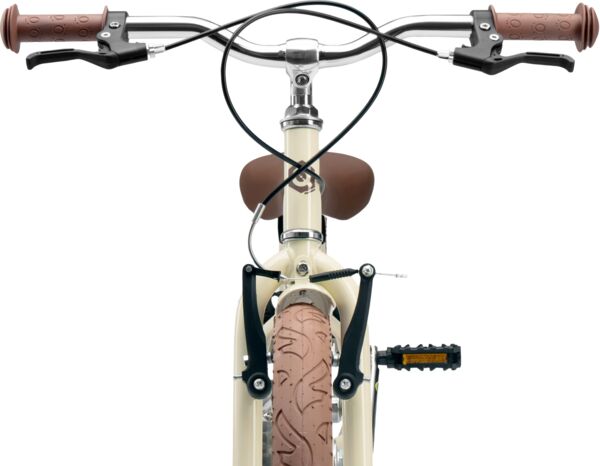 - Рама виконана за класичною високою схемою міського велосипеда з високим кермом. Це забезпечує зручну посадку і дає змогу дитині їздити на велосипеді з рівною поставою, без зайвих напружень.