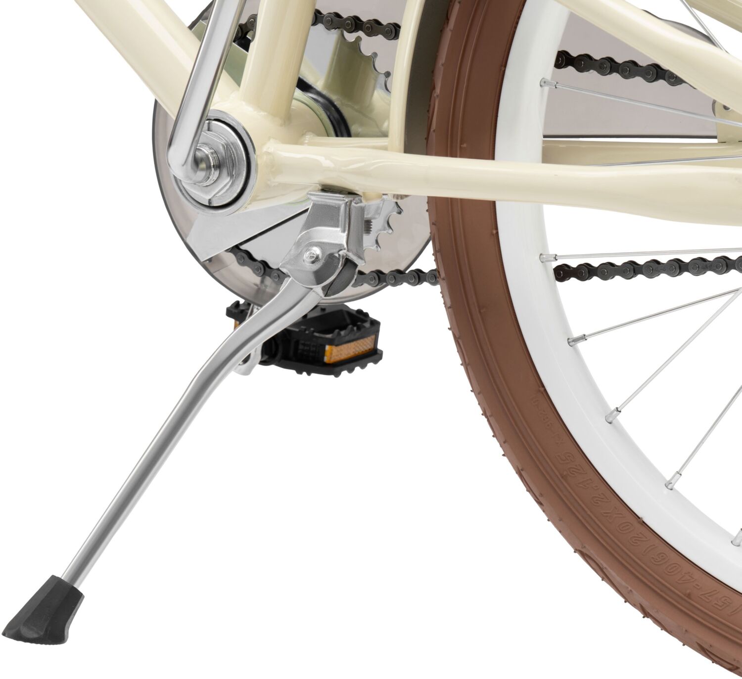 - Колесо 20" сталеве, традиційне зі спицями та класичною втулкою на підшипниках.