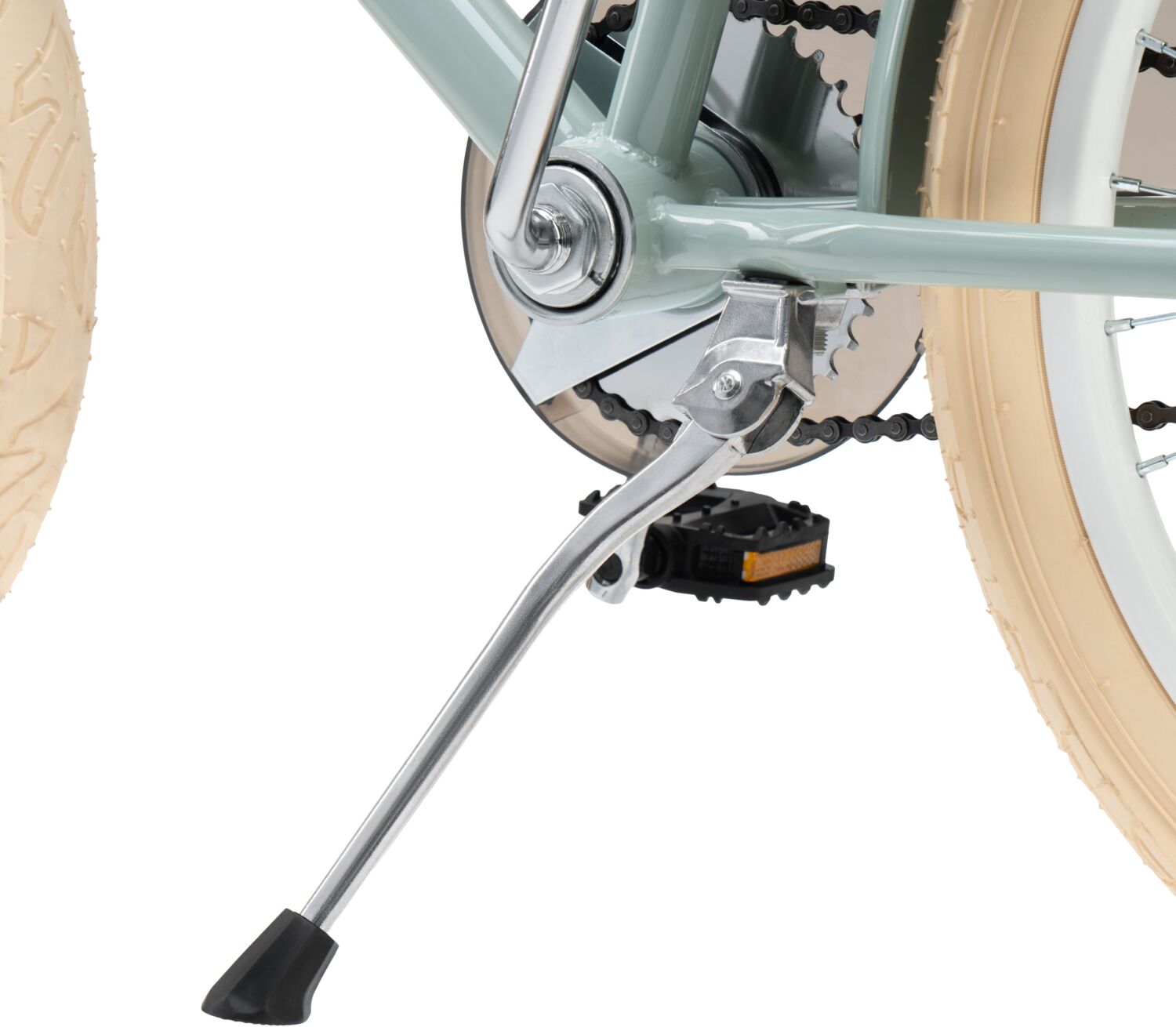- Колесо 20" сталеве, традиційне зі спицями та класичною втулкою на підшипниках.