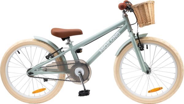 Велосипед для дітей Miqilong RM 20 - це втілення сучасного уявлення про ретро дизайн. Використання фарбування у стилі 50-х років ХХ століття та корзинки ручної роботи з натурального ротангу роблять дизайн велосипеда вишуканим та елегантним.