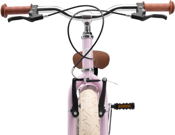 - Рама виконана за класичною високою схемою міського велосипеда з високим кермом. Це забезпечує зручну посадку і дає змогу дитині їздити на велосипеді з рівною поставою, без зайвих напружень.