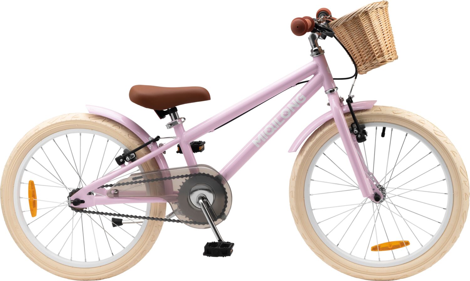Велосипед для дітей Miqilong RM 20 - це втілення сучасного уявлення про ретро дизайн. Використання фарбування у стилі 50-х років ХХ століття та корзинки ручної роботи з натурального ротангу роблять дизайн велосипеда вишуканим та елегантним.