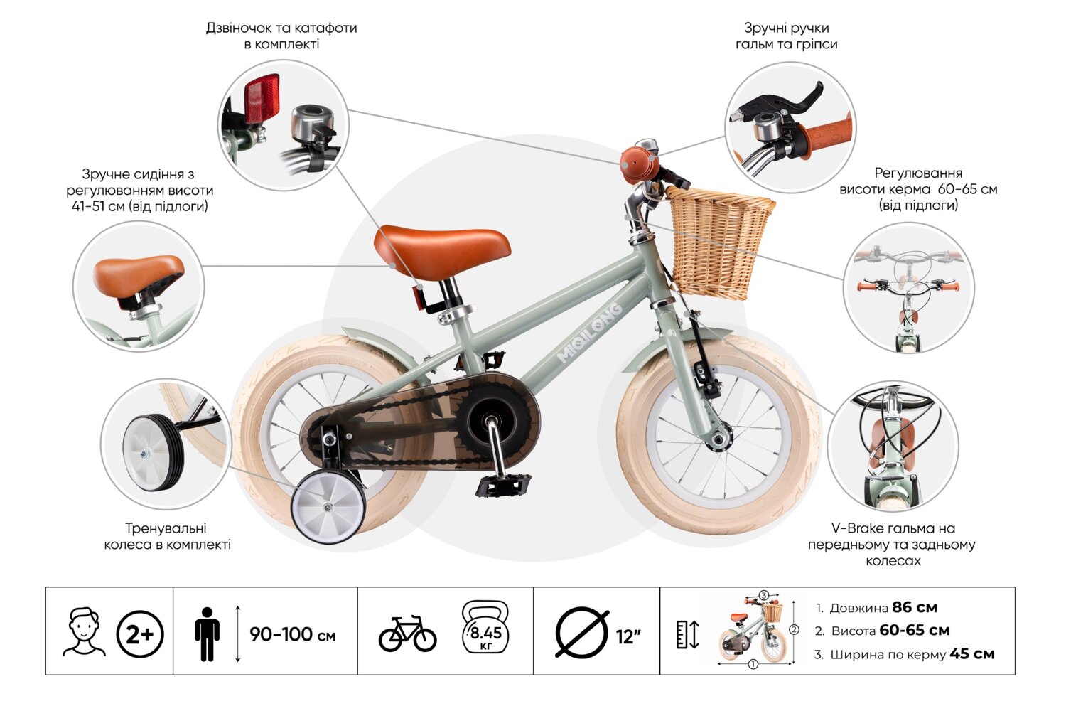 - Дитячий велосипед Miqilong RM Оливковий 12" ATW-RM12-OLIVE