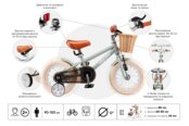 У комплектацію велосипеда входить 2 катафоти, дзвіночок на кермо, набір інструментів для складання та обслуговування велосипеда, кошик з натурального ротанга, набір бічних навчальних коліс.