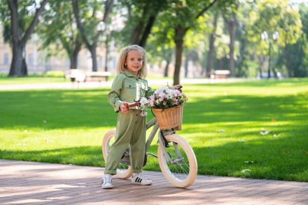 Дитячий велосипед Miqilong RM – це втілення сучасного бачення ретро дизайну. Стилізація під 50-ті роки ХХ століття та кошик ручного плетіння з натурального ротанга роблять дизайн велосипеда витонченим та витонченим.