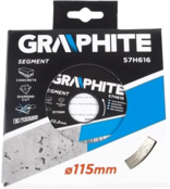 Диск алмазний сегментований Graphite завдяки гарячепресованим сегментам ідеально підходить для важких будівельних робіт. Діамантові сегменти підвищеної міцності дозволяють ефективно різати елементи з бетону, армованого бетону, граніту, мармуру, каменя, цегли тощо.
