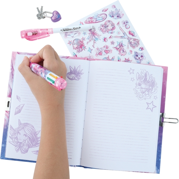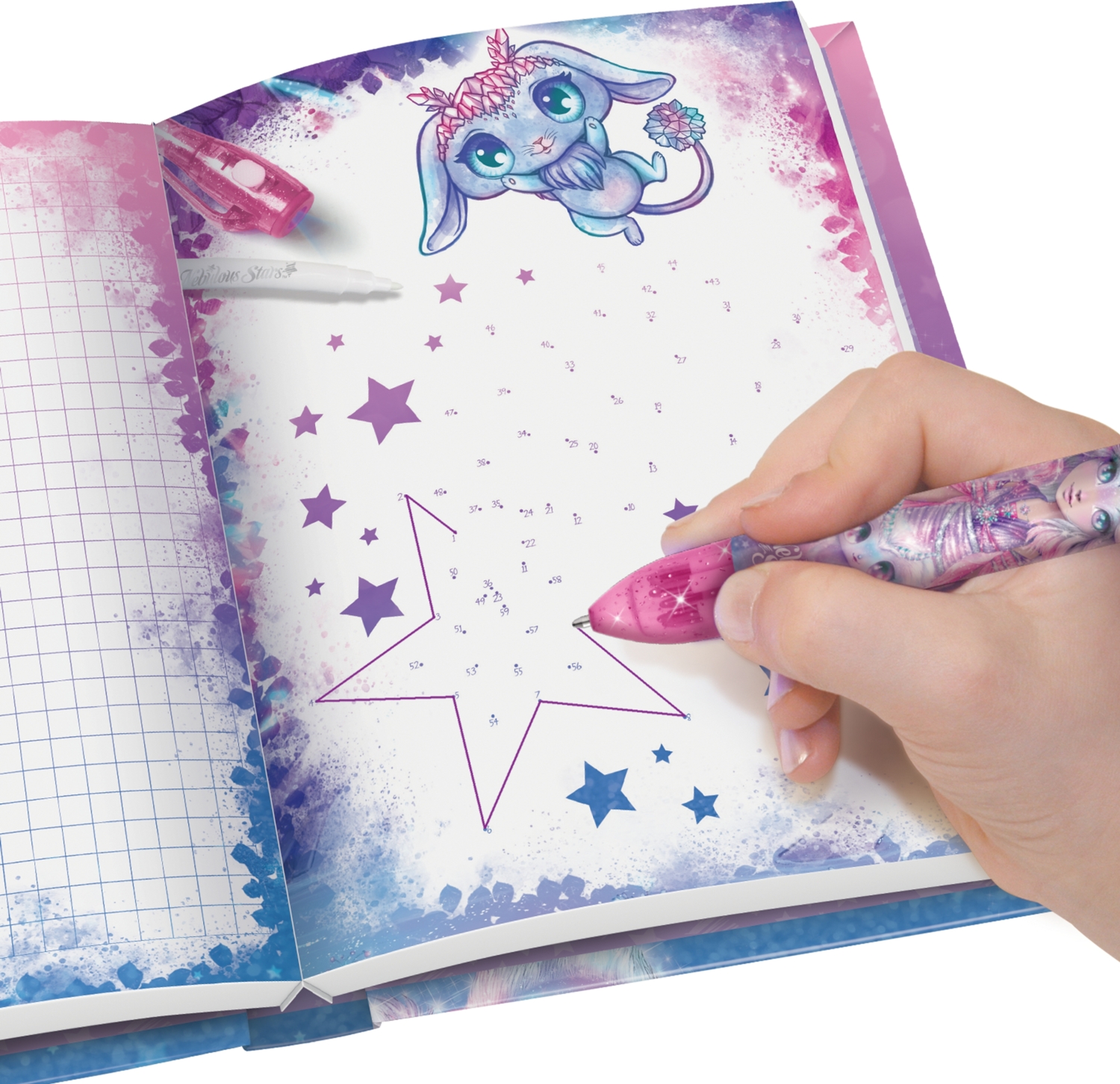 Запрошуємо вас до Всесвіту Туманних зірок, де народжуються всі зорі! Ви познайомитеся з космічним островом, що поєднує в собі естетику, добробут та позитивні цінності. Там живуть зірки різного походження – води, лісу, морозу та космосу. Кожна з них має свою неповторну індивідуальність і історію, улюблені творчі захоплення та цінності. Долучайтеся до магії творчості та релаксації. Приєднуйтеся до космічних мандрів світом зірок! У кожного є свої маленькі секрети! Зірки вислухають усі ваші секрети та поділяться вашими думками та справами через цей секретний щоденник. У комплект входить чарівна секретна ручка.