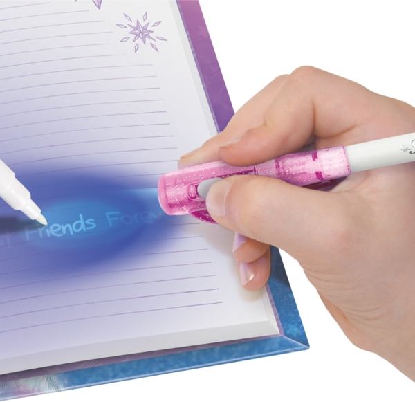 | Комплектація (можливі зміни в різних поставках) | Чарівна ручка з сяючим ковпачком, Щоденник, Замок, Ключ – 2 шт., Кулькова ручка на 6 кольорів |