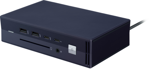 ASUS SimPro Dock 2 - це компактна універсальна док-станція, яка спрощує підключення ноутбука до робочого середовища. Підключіть ноутбук за допомогою лише одного кабелю, і він отримає живлення, буде підключений до мережі й периферійних пристроїв, а також зможе працювати в багатозадачному режимі з моніторами роздільною здатністю до 8K. Ця док-станція також має вбудований зчитувач смарткарт, що може використовуватися для різних потреб бізнесу. SimPro Dock 2 зробить ваш стіл чистим і охайним, а також миттєво підготує ноутбук до роботи.