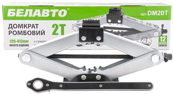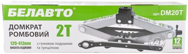 - Домкрат Belauto Ромбовий 2т. з тріскачкою, гумова подушка, вис. підйому 120-413мм. (DM20T)