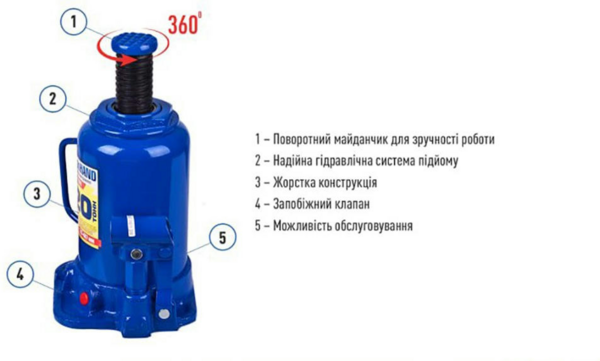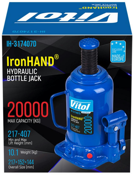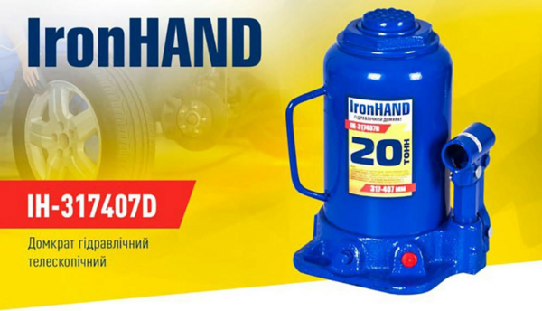 Опис Домкрат Iron Hand гідравлічний 20т 217-407мм (IH-317407D)