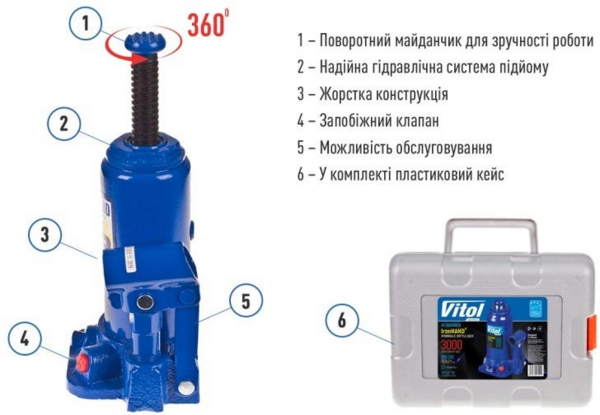 Опис Домкрат Iron Hand гідравлічний 3т 180-350мм (IH-180350D-K)