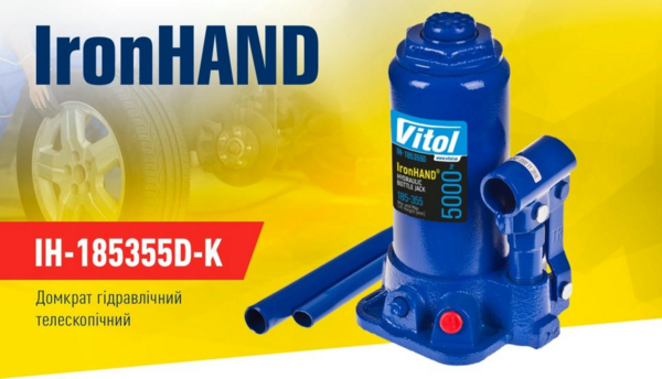 Відгуки та питання про Домкрат Iron Hand гідравлічний 5т 185-358мм (IH-185355D-K)