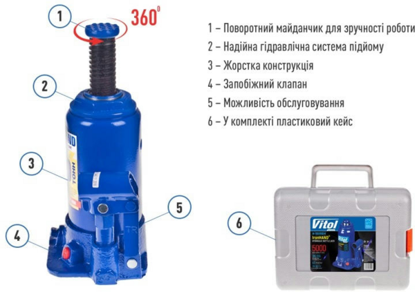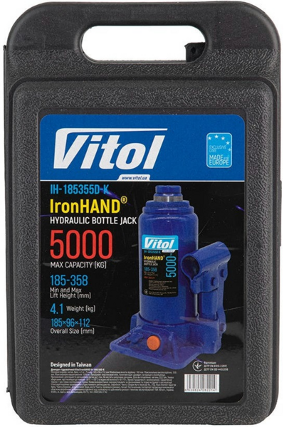 Опис Домкрат Iron Hand гідравлічний 5т 185-358мм (IH-185355D-K)
