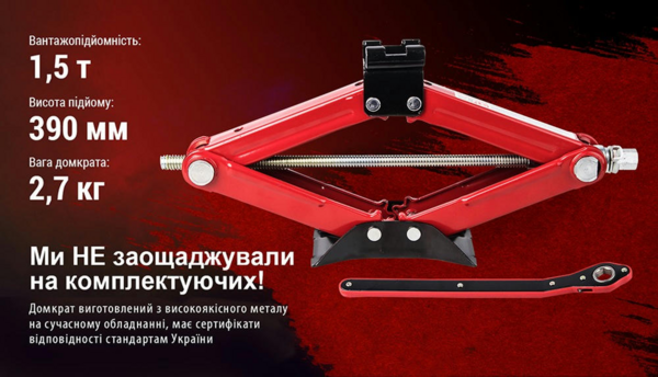 Домкрат Штурмовик ромбовий 1.5т 390мм (BBC-1500)Домкрат Штурмовик ромбовий 1.5т 390мм (BBC-1500)