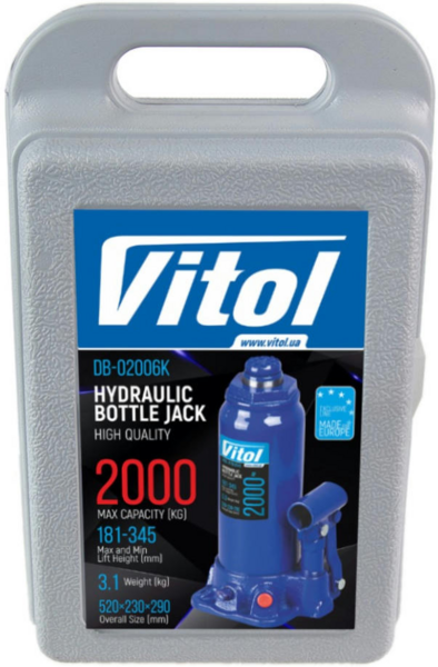 - Домкрат Vitol гідравлічний 2т 181-345мм (DB-02006K)