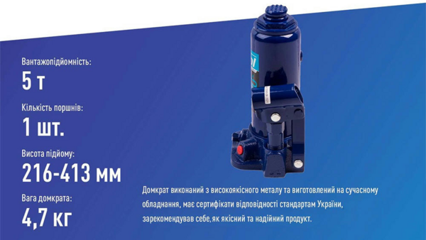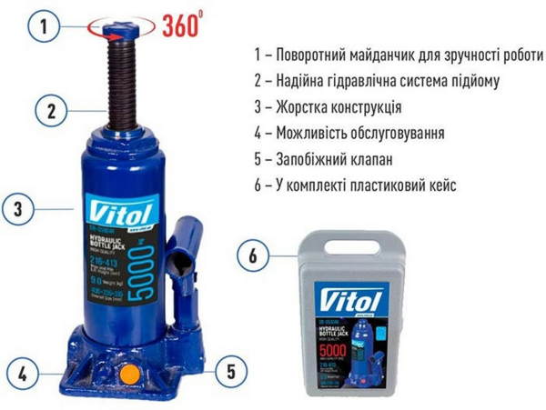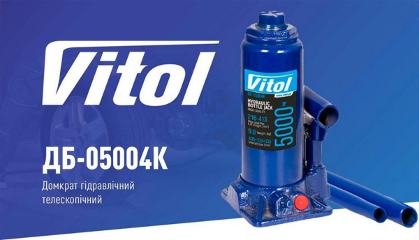 Опис Домкрат Vitol гідравлічний 5т 216-413мм (DB-05004K)