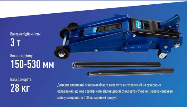 Домкрат Vitol гідравлічний підкатний 3т 150-530мм (DP-25025B)