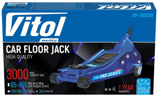Домкрат Vitol гідравлічний підкатний 3т 85-455мм (DP-300038)
