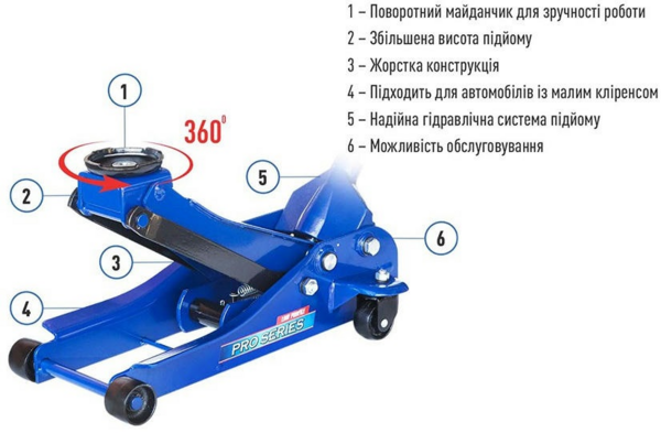 Схожі товари Домкрат Vitol гідравлічний підкатний 3т 85-455мм (DP-300038)