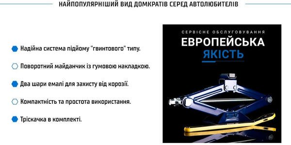 Схожі товари Домкрат Vitol ромбовий 1т з тріскачкою 350мм (DB-T10103A)