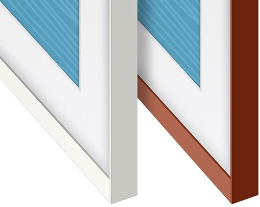 Рамки для телевізора Frame пропонуються в 4 кольорах, включаючи білий, деревний, коричневий і цегляно-червоний. З їхньою допомогою ви можете реалізувати свій погляд на оформлення вашої кімнати з урахуванням усіх особливостей інтер`єру.