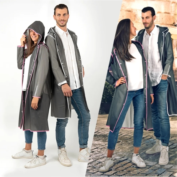 Водонепроникний тренч Perletti сірого кольору — ідеальний одяг для прогулянок у дощову погоду, екскурсій у гори або на природу. Дощовик легкий, має контрастну окантовку та забезпечує надійний захист від вологи. Це чудова альтернатива парасольці.