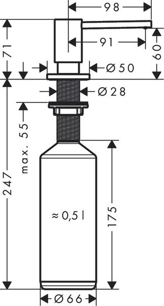Дозатор миючих засобів Hansgrohe A51, 500 мл, хром (40448000)Дозатор миючих засобів Hansgrohe A51, 500 мл, хром (40448000)