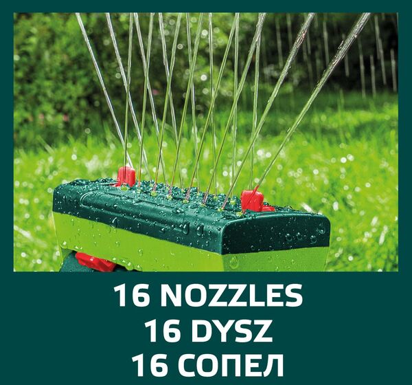 Ороситель маятниковый VERTO с 16 форсунками обеспечивает удобный полив территории площадью до 208 м квадратных. Функция регулировки диапазона полива, а также регулятор давления воды позволяют настроить дощувальник в зависимости от территории, которую планируем поливать Имеется металлическая ножка для быстрой и удобной установки дощувальника на траве.