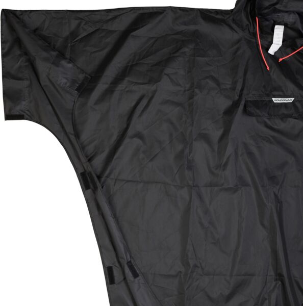 Завдяки вільному крою дощовик можна носити поверх куртки або светра, а також поверх невеликого (20-літрового) рюкзака. Він покриє від голови до верхньої частини ніг, а зав'язки дозволять відрегулювати капюшон відповідно до розміру голови. Коли дощ закінчиться, треба просто покласти пончо у його власну кишеню, що розташована спереду. Розміри кишені: 23,5 см × 20 см.