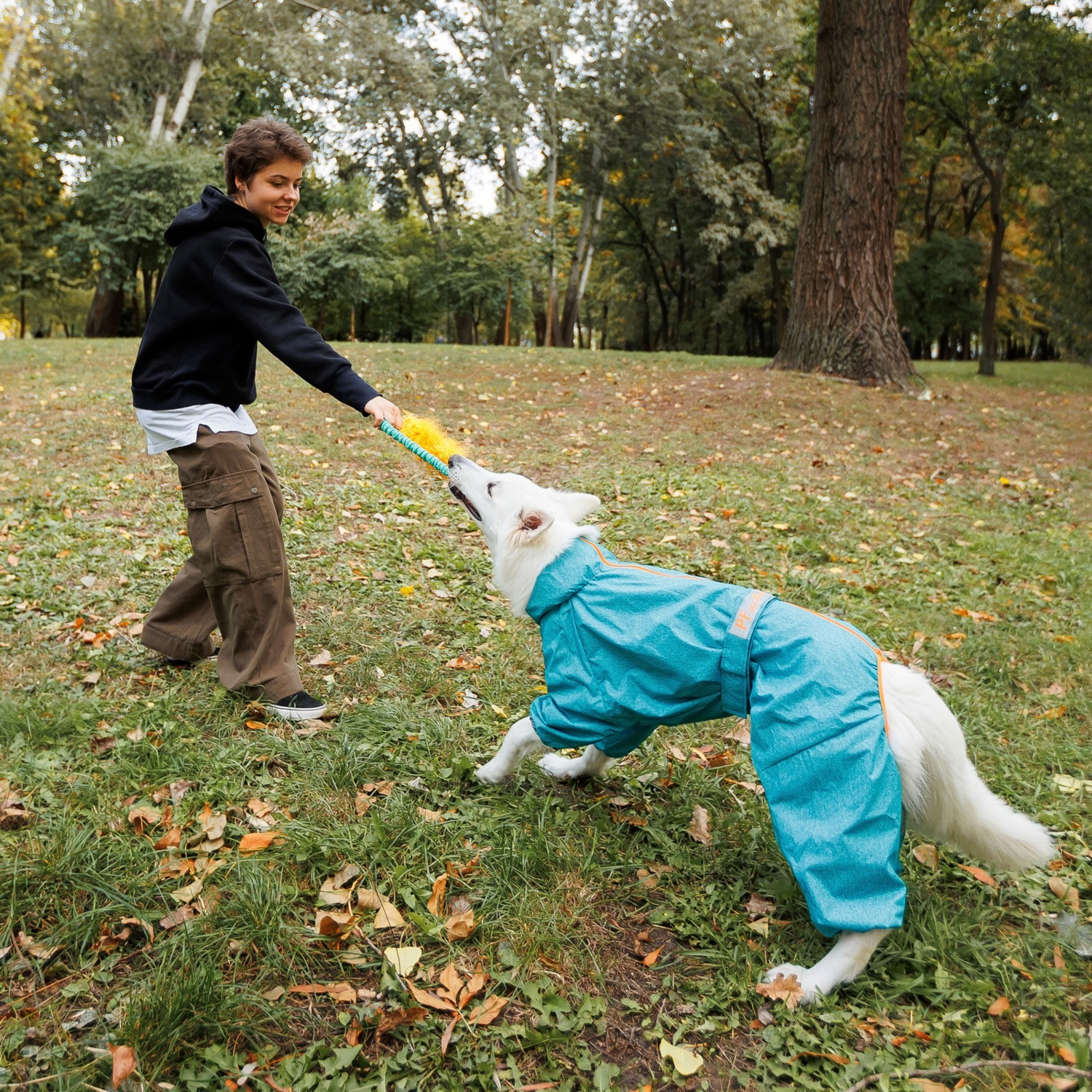 З дощовиком RAIN прогулянки в будь-яку негоду будуть комфортними. Комбінезон RAIN виготовлений з тканини, яка відбиває вологу завдяки високотехнологічному покриттю. Вона надійно захищає від дощу і вітру, а ще — не шелестить. Додатково улюбленця захищає від негоди високий комір. Дощовик легко вдягається завдяки застібці-блискавці на спині й фіксується поясом на липучці, який забезпечує ідеальну посадку. Для підвищення безпечності прогулянок в сутінках або темряві пояс доповнено світловідбиваючою стрічкою та термоаплікацією на грудях. Універсальна і практична модель легка в догляді.