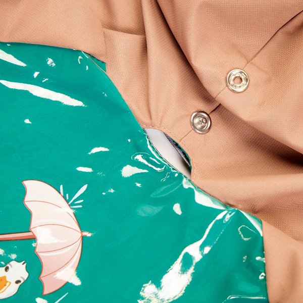 Такого зручного й оригінального дощовика ви ще не бачили! Два шари тканини на спинці, плащівка і силікон, на 100% захищають від дощу, навіть дуже сильного, а капюшон з плащової тканини прикриє від негоди вушка і шию. В основі капюшона є отвір для повідця. Зручна застібка на липучках дає змогу швиденько надягати дощовик навіть на тих улюбленців, яким не подобається носити одяг. Приємні кольори, термоаплікація з безстрашними гусьми, оригінальний додаток з прозорим силіконом і світловідбивний кант на спинці - це робить модель надзвичайно привабливою. Ваш хвостик у такому плащику напевно приверне увагу всіх навколо.