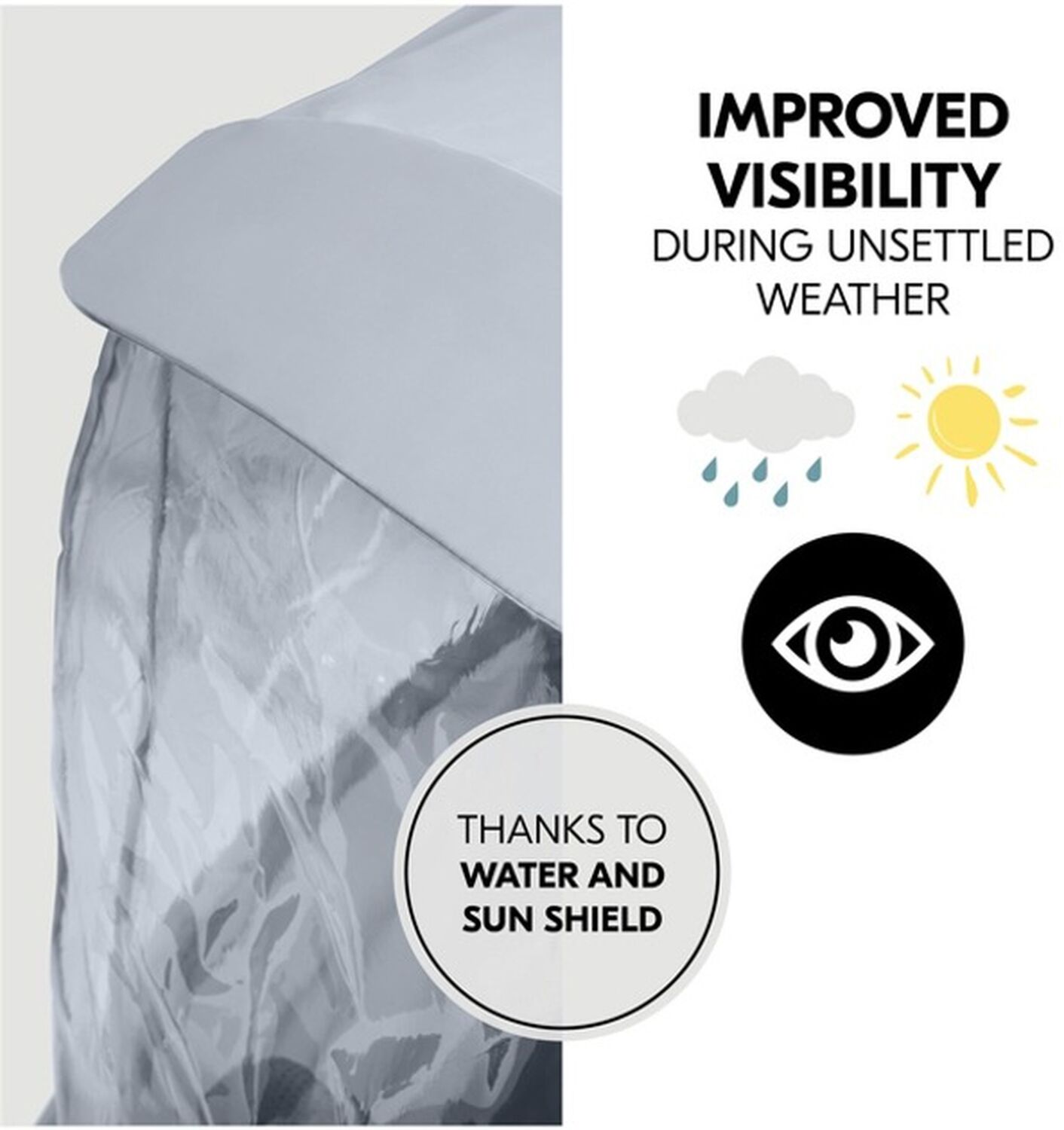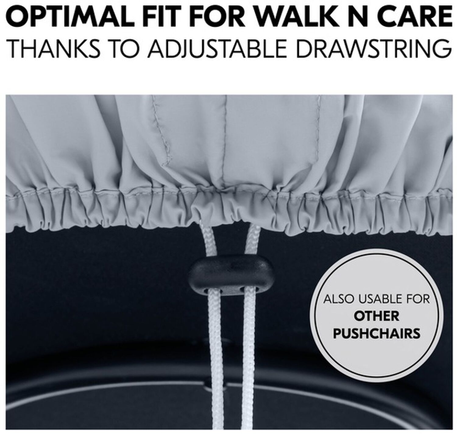 Завдяки оптимальній посадці як для люльки, так і для прогулянкового блоку, ви можете використовувати дощовик з народження до ясельного віку. Дощовик виготовлений з міцної та довговічної плівки Peva і, таким чином, безпечний для здоров'я вашої дитини. Завдяки регульованому шнурку дощовик ідеально підходить для дитячого візочка Walk N Care, але також може використовуватися універсально для інших дитячих візочків та прогулянкових блоків. Під час зміни погоди з дощу на сонце дощовик забезпечує поліпшену видимість, а також більш швидкий злив води по плівці Peva. Завдяки боковинам вікна, що перекриваються, ви можете в будь-який момент залізти в коляску, не відкриваючи чохол повністю. За необхідності оглядове вікно можна швидко відкрити та закрити за допомогою кнопок. Дощовик компактно складається і поміщається в кошик для покупок або рюкзак, де він буде під рукою на випадок, якщо знову почнеться дощ.