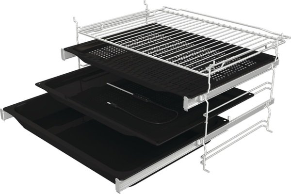 Поєднання продуманої системи циркуляції повітря, рівномірного розподілу рівнів приготування та особливої склепінчастої форми духовки забезпечує рівномірне пропікання страв на кожному рівні, а оскільки духовка велика, то і спостерігати за приготуванням на кожному рівні зручно.
