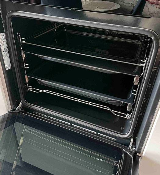 Вже встигла випробувати її в ділі, вона дуже велика всередині. Оскільки верхня частина трохи заокруглена (як у старих печах), гаряче повітря гуляє краще, і м’ясо пропікається рівномірно.Дуже сподобалася функція пари, хліб і домашні булочки виходять з такою хрусткою скоринкою. Також плюс, що дверцята зачиняються плавно і тихо, нічого не грюкає. Керування просте: звичайні крутилки, які ховаються в корпус , тому їх зручно мити.